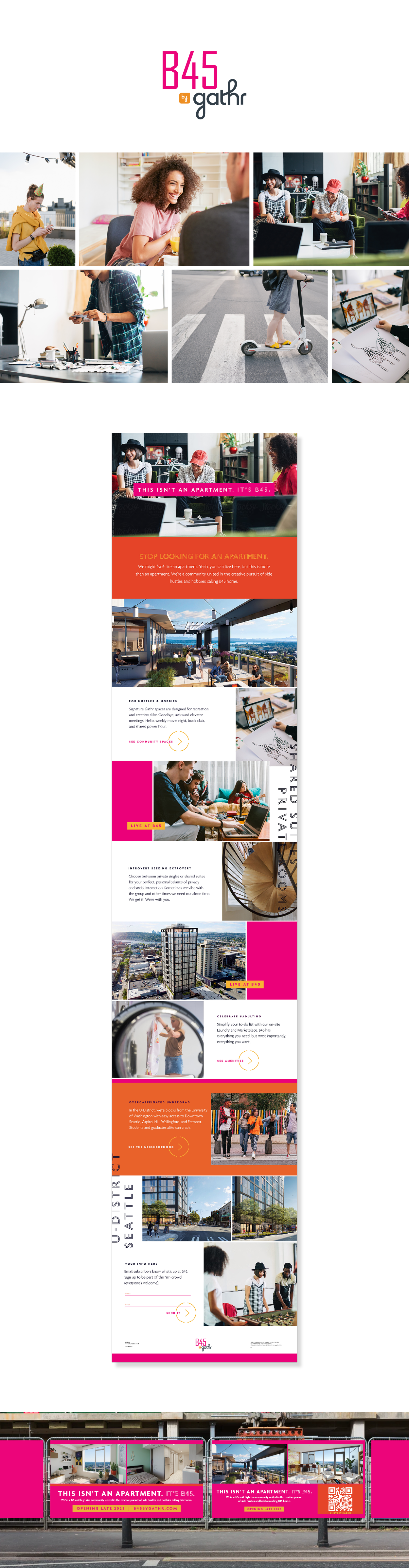 B45 by Gathr took many shapes in the early development. We threw around a handful of ideas for the overall look and feel of this brand but we ultimately went with something bold, edgy, authentic, and not formal. Did someone say Gen Z?